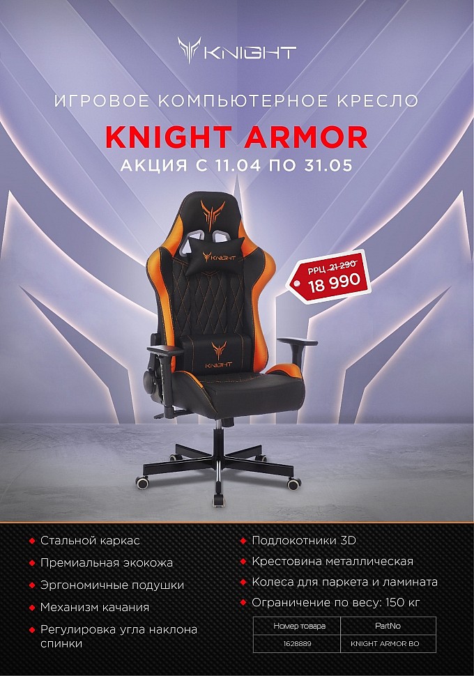 С 11/04 и до 31/05 проводится акция на два люксовых игровых кресел серии KNIGHT
