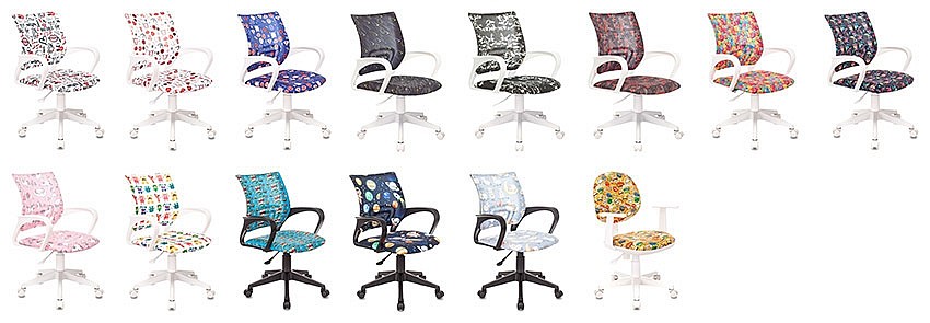 Новые креативные рисунки и яркие принты использованы в моделях: BUROKIDS 1, BUROKIDS 1 W, KD-W4, CH-W204NX и CH-W356AXSN. Нежные единороги и мечтательные барашки, элементы аниме наруто и полотно комиксов, графические дизайны и всегда популярная космическая тема – теперь выбрать кресло ребенку можно на любой вкус и предпочтения.