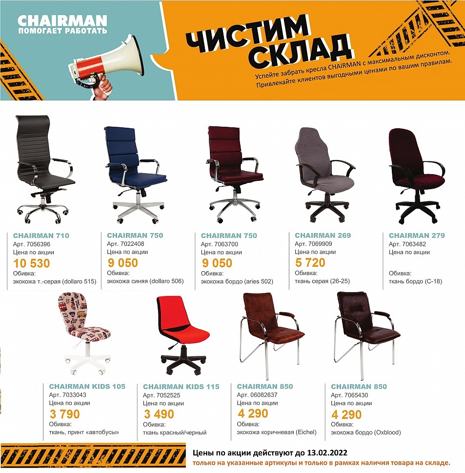 Успейте забрать кресла CHAIRMAN с максимальным дисконтом. Запас товара ограничен. Акция действует до 13.02.2022