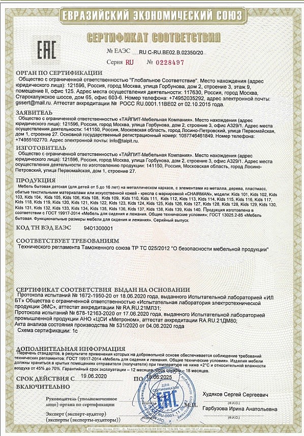 Сертификат соответствия CHAIRMAN KIDS![]() |